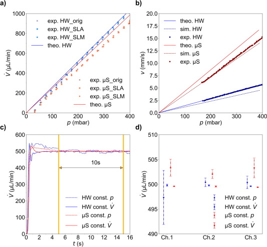 样品制备是单分子实验的关键步骤,包括钝化微流体样品室、固定分子和设置实验缓冲条件。 实验的效率取决于样品制备的质量和速度,这通常是手动进行的并且依赖于实验者的经验。 这可能会导致单分子样品和时间的利用效率低下,特别是对于高通量应用。 为了解决这个问题,提出了一种压力控制微流体系统来自动化单分子样品制备。 该硬件基于 ElveFlow 的微流体组件,设计成本效益高且适用于各种显微镜应用。 该系统包括一个储液池压力适配件和储液池支架。 对两种流动室设计 Ibidi μ-slide 和 Grace Bio-Labs HybriWell 室进行了表征,并使用 CFD 模拟来模拟不同体积流速下液体的流动特性,并与实验值和理论值进行比较。 这项工作的目标是建立一个简单而强大的单分子样品制备系统,可以提高实验效率并减少手动样品制备的瓶颈,特别是对于高通量应用。