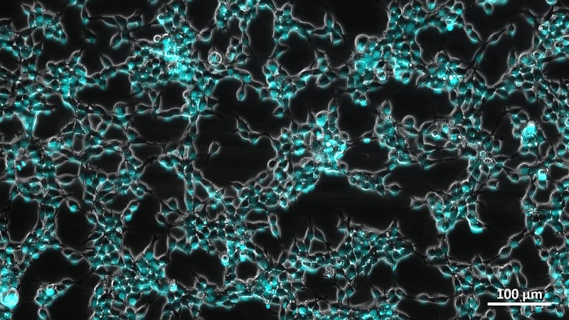 微流控芯片内的HEK293细胞