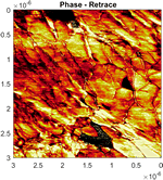 上图中显示了使用DFRT模式下的第四谐波响应测量纳米晶Sm掺杂氧化铈样品的振幅和相位像。