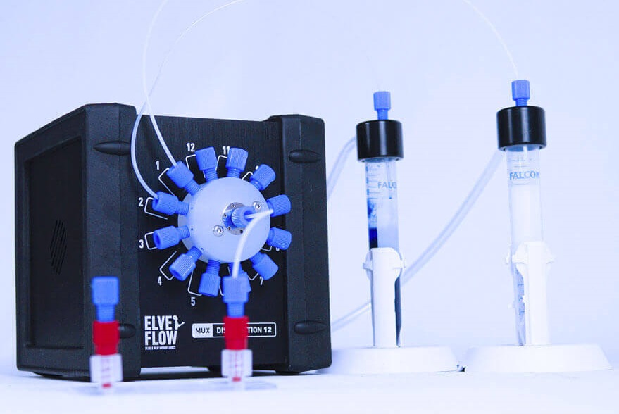 - 微流体液体分配阀MUX Distribution12:高达12种不同液体介质的可控注入