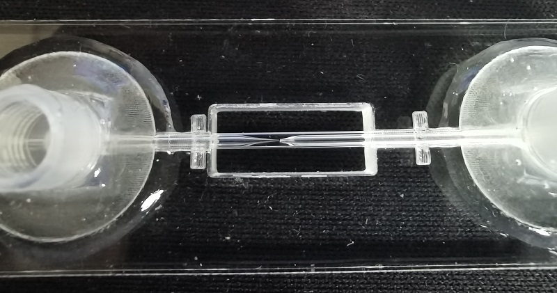 锥型玻璃毛细管器件采用拉管仪或加热拉伸工艺加工锥型玻璃管,然后将锥型玻璃管组装在一起,形成嵌套结构。这种结构易于加工和组装,同时成本低。