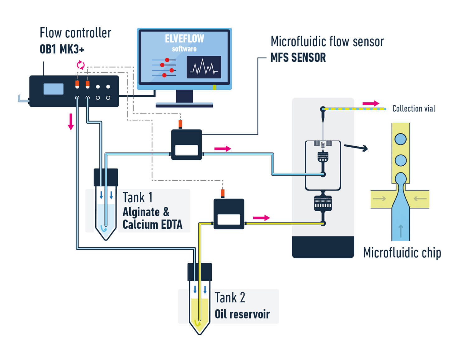 ● 2个流量传感器MFS(量程范围从0-7μL/min)