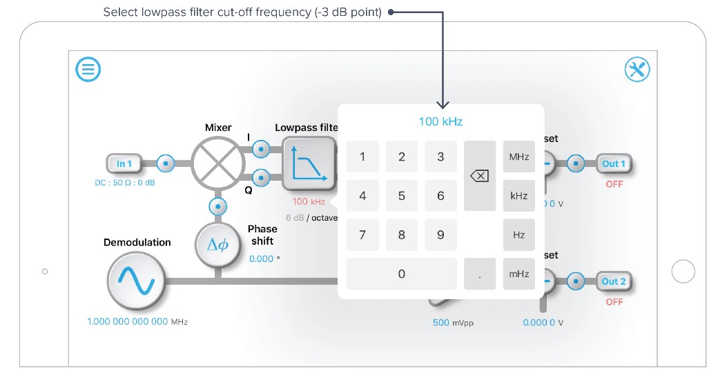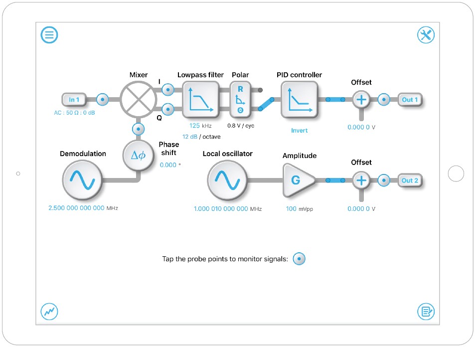 1、 从Moku:Lab测量仪的iPad应用程序上启动锁相放大器