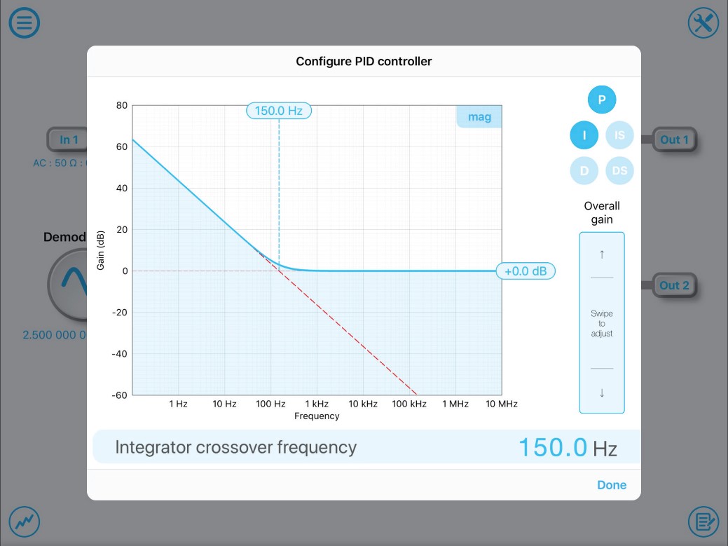 Moku:Lab锁相放大器的双相解调器产生的信号与输入信号的相位成比例,该输入信号的相位是相对于偏移频率的参考振荡。误差信号可以路由到专用的PID控制器,以产生控制信号,从而驱动从激光器的频率(或相位)。在大多数情况下,激光的频率可以通过压电换能器(PZT)或电流来控制,也可以使用其他类型的致动器包括电、热和声光调制器,但这里不考虑这些技术。