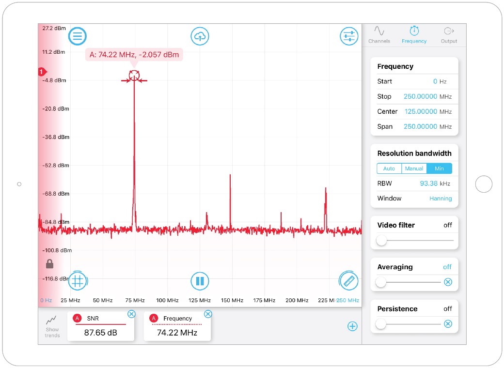 Tip:如果光电探测器的带宽为50 MHz,则应将跨度设置为100 MHz,起始频率为0 Hz,因为它不太可能出现在100 MHz以上。