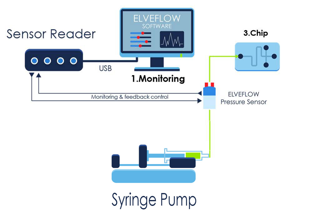 *通常,在微流体流动实验期间记录和控制的主要参数是流速值(流量传感器)。如果研究人员决定在其实验中使用注射泵,那么他可以直接输入所需要的流速值,注射器将通过推动注射器活塞使其保持恒定。不幸的是,没有办法控制几乎所有标准型号的推进,这对于压力敏感的样品或微流体器件来说可能是至关重要的(某些连接器与高压不兼容并且可能泄露)。