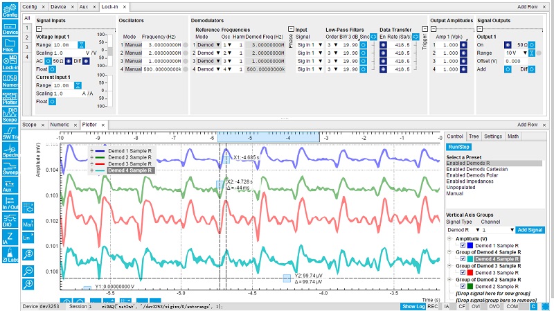 LabOne软件中Plotter工具显示细胞、细菌、液滴等通过电极区域时的差分测量信号谱