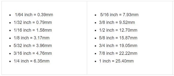 导管和套管通常使用英制单位系统而不是以毫米为单位,英制单位系统通常使用几英寸的大小值。因此,为了便于英制单位和毫米单位的换算,您可以参考如下的单位换算列表。