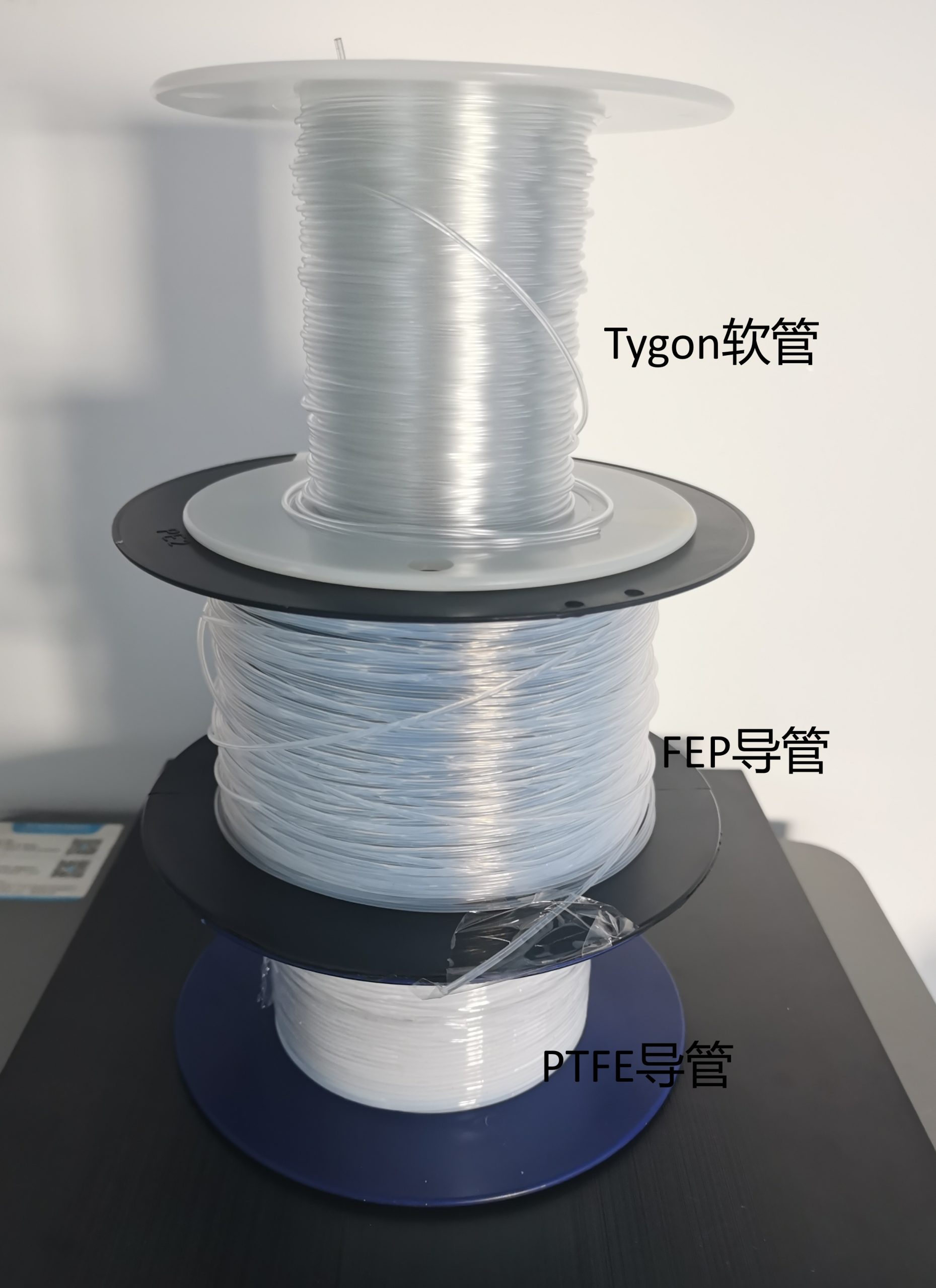 (4)微流体FEP管(氟化乙烯-丙烯):PTFE管的这种不错的替代品具有许多类似的特性,例如生物相容性和对大多数化学品的显著惰性。这种具有非常好的光学透明度的柔性材料主要用于低压微流体。