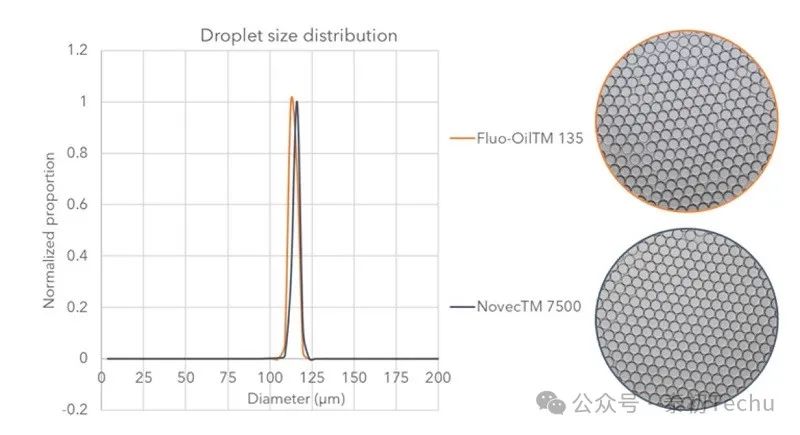 与3M Novec HFE7500油产生液滴性能的测试比较