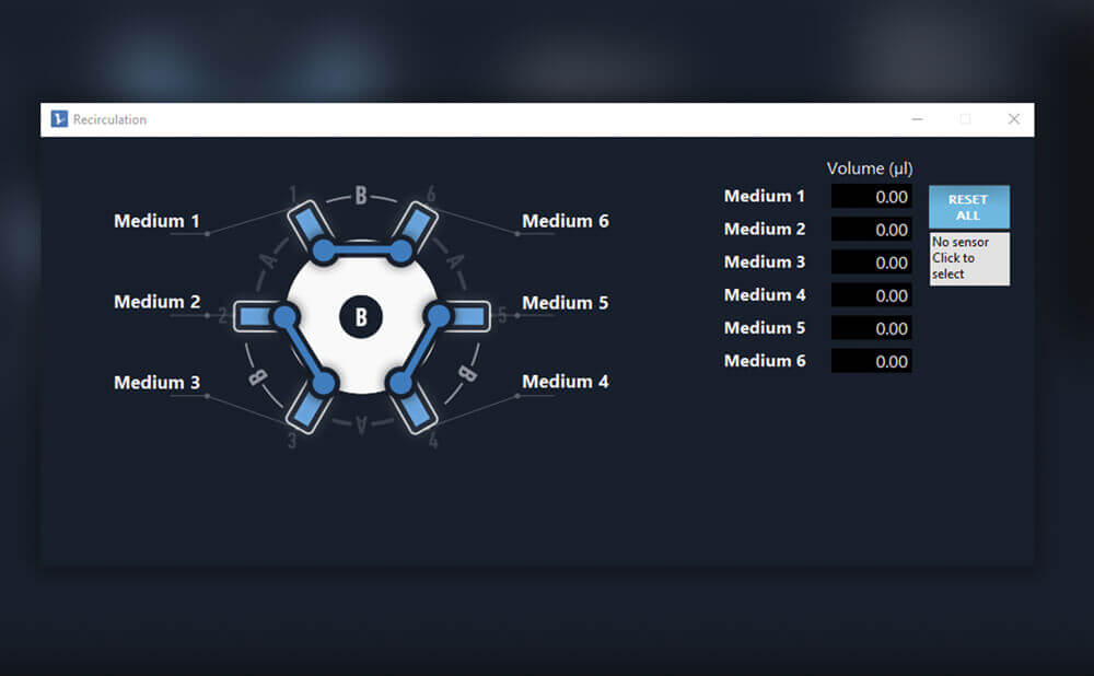 Elveflow智能界面软件ESI将流量控制器与液体循环阀同步,以执行液体再循环。它会在预定的时间段后自动执行储液池之间的切换,或者在选定量的样品通过微流控芯片后与流量传感器MFS或BFS结合使用。凭借强大的scheduler自动化序列器功能,ESI软件还能够无缝的运行长期实验,无需人为干预。