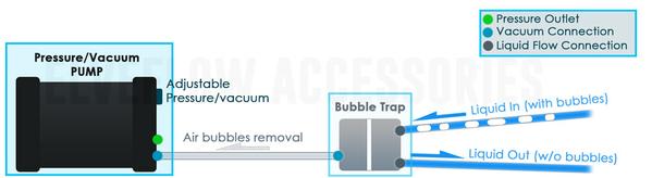 您可以在被动或主动模式下使用除泡器。在主动模式下,我们使用真空泵对其进行了高达2 bar的测试。然而,除泡效果取决于您的实验:如果只需要0.5 bar来消除溶液中的气泡,那么增加真空压力是没有用的。