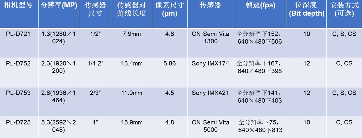 ● 采用CMOS全局快门技术,提供低噪声图像的高质量数据。