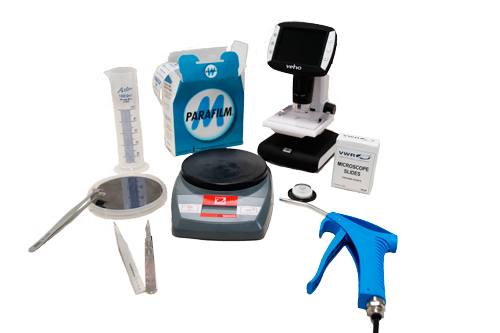 包括所有化学品(PDMS、异丙醇、丙酮等)和所有实验室配件(载玻片、培养皿、一次性杯子、搅拌棒、手术刀等),以便为您提供完整的配件。