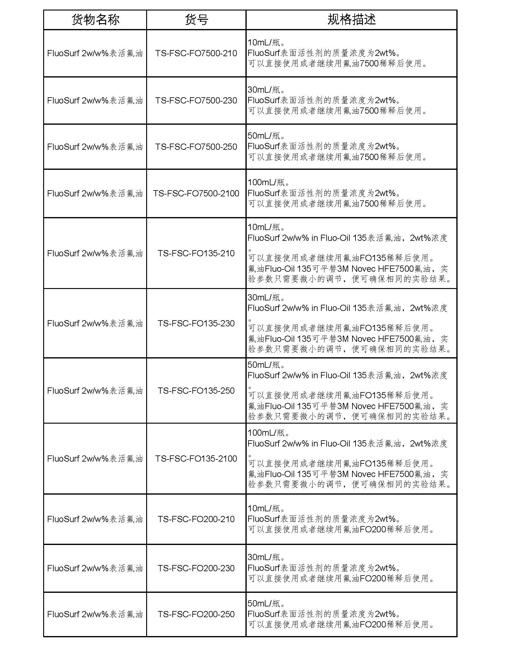 FluoSurf 2wt%/5wt%含氟表面活性剂氟油FO135/FO200/FO7500/FO40(油相液体,可直接使用或再次稀释后使用)