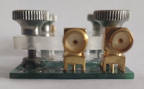 为了解决传统的电阻抗检测芯片的大量消耗以及芯片通道清洗问题,我们开发了挤压式PDMS电阻抗检测芯片,其采用类似夹具式的方法将带有沟道的PDMS芯片挤压到底部带有共面电极的玻璃片上。夹具侧边可直接连接SMC电气接头,此连接方式可快速连接到阻抗分析仪、锁相放大器、示波器、信号发生器等任何测试&测量设备上。