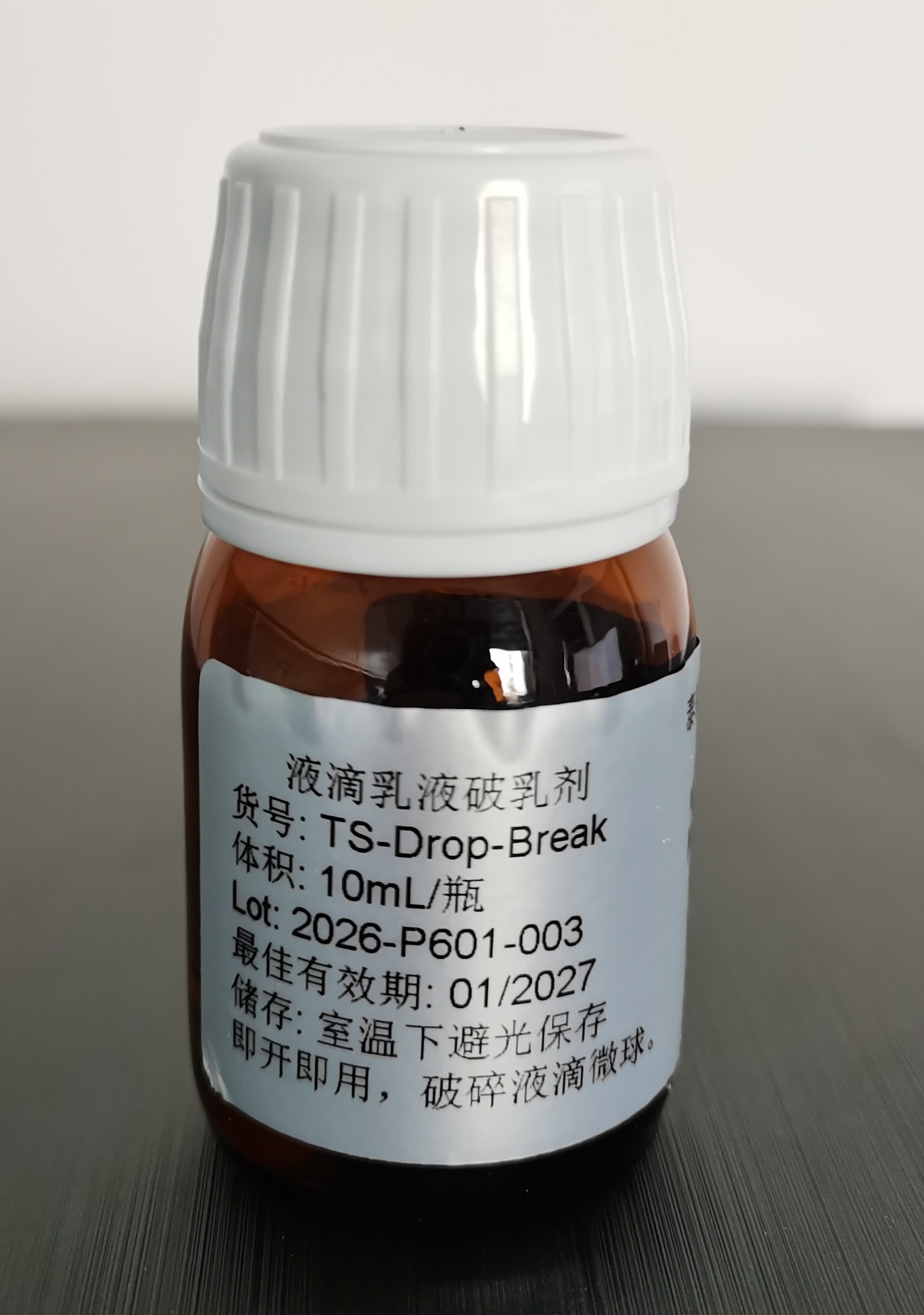 液滴乳液破乳剂Drop-Break,又被称为液滴微球清洗液或液滴破碎剂,是一种专门用于破碎含氟表面活性剂氟油如PFPE-PEG-PFPE、Surf系列、FluoSurf 系列7500产生的油包水液滴微球,得到液滴微球内部物质,便于后续的图像观察和成份分析。